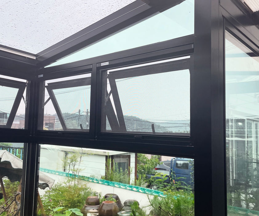 전면 폴딩도어와 함께 양쪽 환기창이 있어 비오는 날에도
